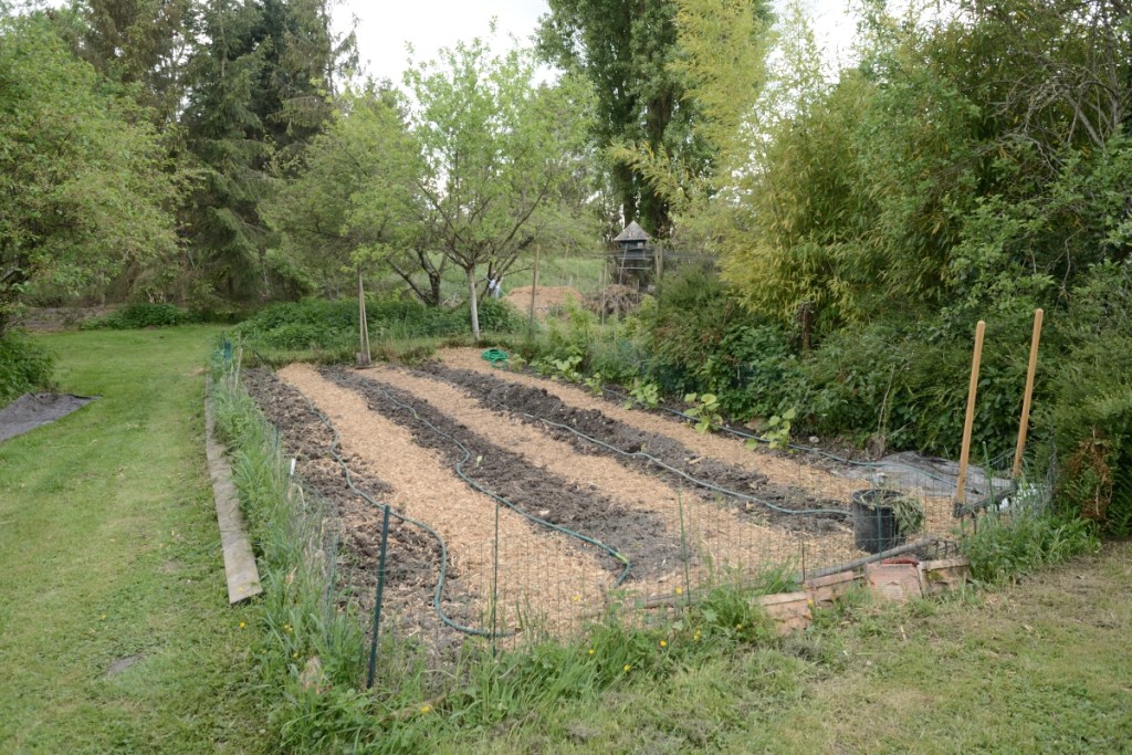 La haie d’arbre renversée par la tempête pendant l’hiver a permis de générer du BRF en quantité.