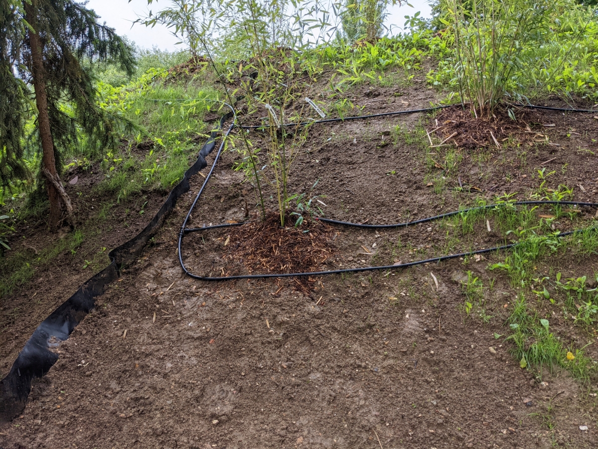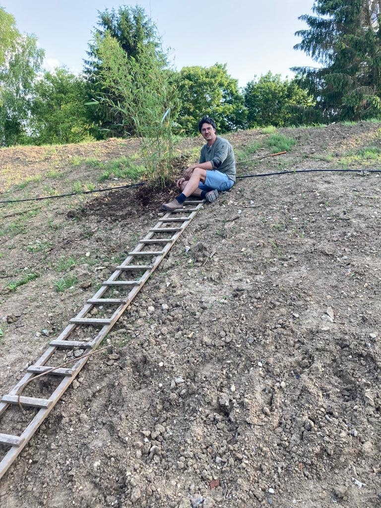 Semi d’herbe, ratissage, pose du goutte à goutte